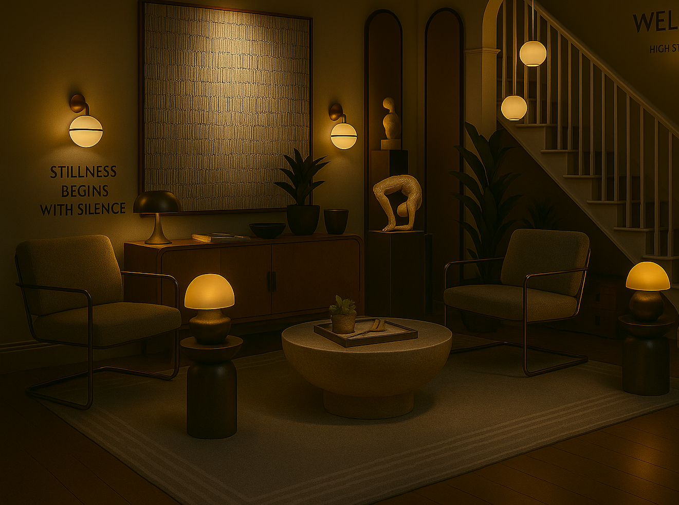 A calming, cocooning reception designed to slow the pace and gently transition from outside to within. Warm, ambient lighting is used to shape the experience, softening the space and creating a sense of quiet intimacy. Sculptural forms and natural materials bring depth and tactility, while a rich, tonal palette envelops the room in warmth. The layout is intuitive and open, allowing for easy flow while encouraging moments of pause. The result is a space that feels grounding, welcoming and quietly restorative, setting the tone for everything that follows.